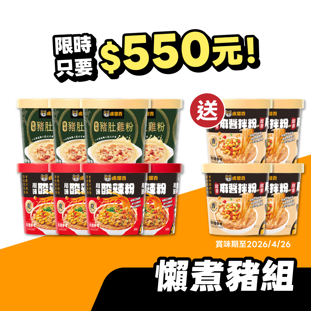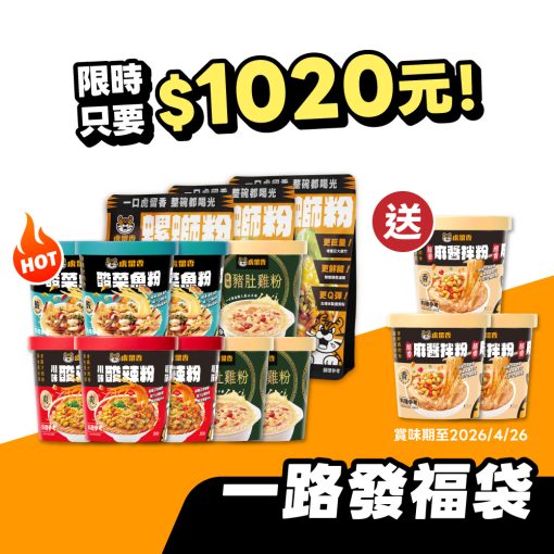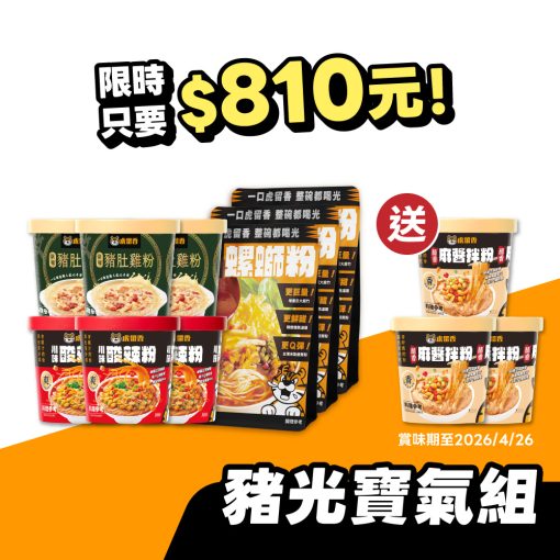 ▸ 螺螄粉3包 + 酸辣粉3碗 + 酸菜魚粉3碗 + 醋香麻醬拌粉3碗 + 胡椒豬肚雞3碗
